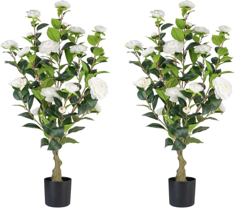 • ✔LOW-MAINTENANCE & LONG-LASTING: Unlike real plants, these 3ft faux camellia trees require no watering or sunlight, making them a perfect choice for busy individuals. Enjoy lasting beauty year-round with zero upkeep