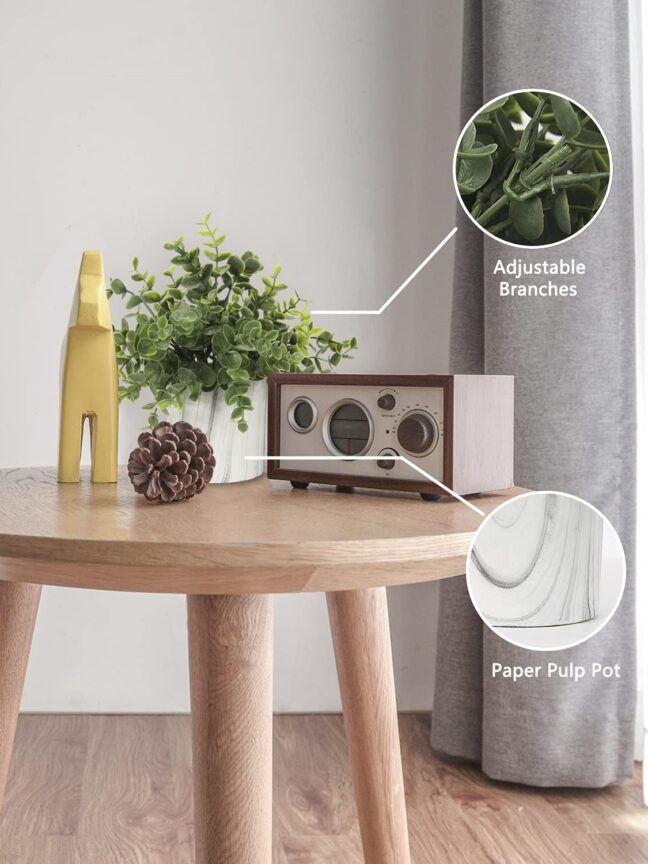 - Beautiful clusters of eucalyptus boxwood plants give an elegant touch to your tabletop centerpieces, desktop, shelf décor, or even event decorations