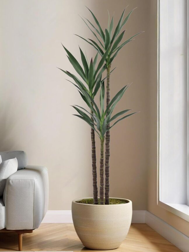 • A single trunk with 21 attractive leaves. Beautiful accent for any décor, room, or space. Wash by spraying with cool water in the shower.