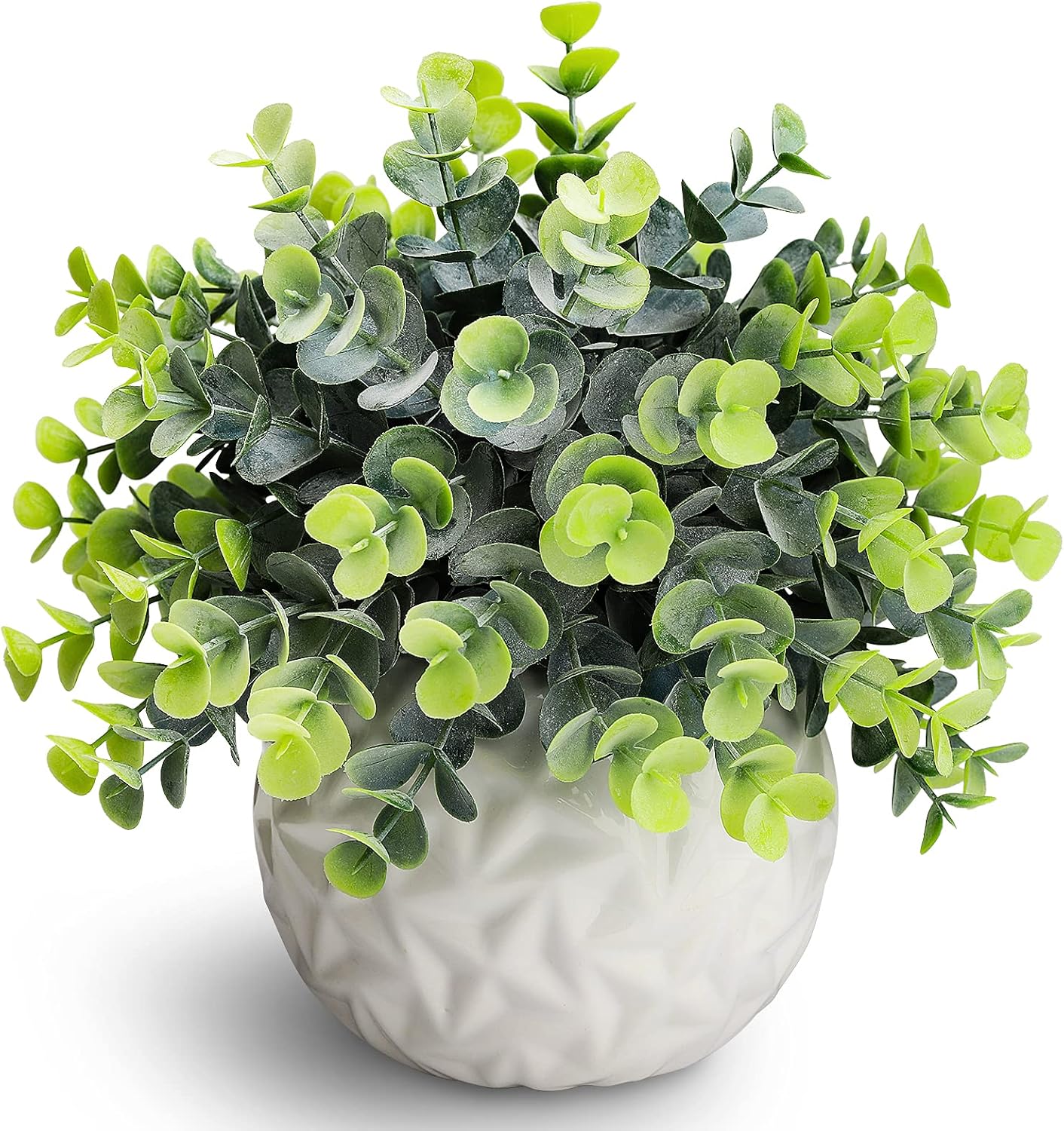 Fake Plants Indoor Small Artificial Eucalyptus Plants in White Pots for Bedroom Home Decor Faux Plants Decor