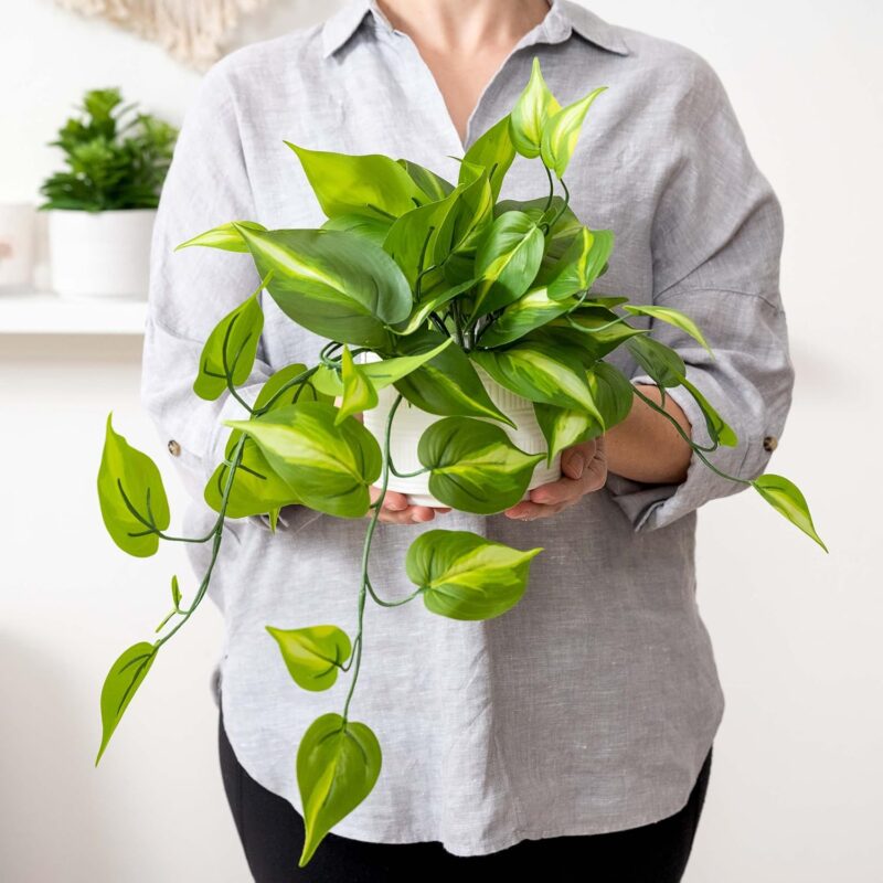 • SO LIFE-LIKE – Our natural-looking decorative fake plants look so real. A fake house plant will look great with your kitchen decor or living room decor. Ivy leaves trail approx 18″ from the start of the pot